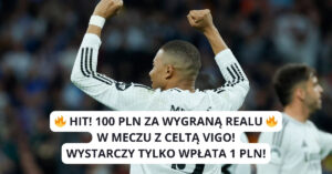 W Superbet możesz odebrać 600 zł za wygraną Realu Madryt z Lille. Wystarczy do tego stawka zaledwie 2 zł! Otwierasz konto TUTAJ, następnie wpłacasz minimum 50 zł, grasz z regularnej oferty za 2 zł na wygraną Realu, a jeżeli ograją Lille na Twoje konto wpadnie 600 zł!