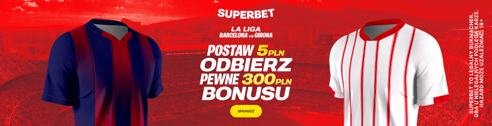 W Superbet możesz odebrać 300 zł za wygraną PSV lub Liverpoolu (do wyboru). Wystarczy do tego stawka zaledwie 2 zł! Otwierasz konto TUTAJ, następnie wpłacasz minimum 2 zł, grasz z regularnej oferty za 2 zł na wygraną wybranego klubu, a jeżeli zwyciężą w tym meczu to otrzymasz 300 zł od buka Superbet.